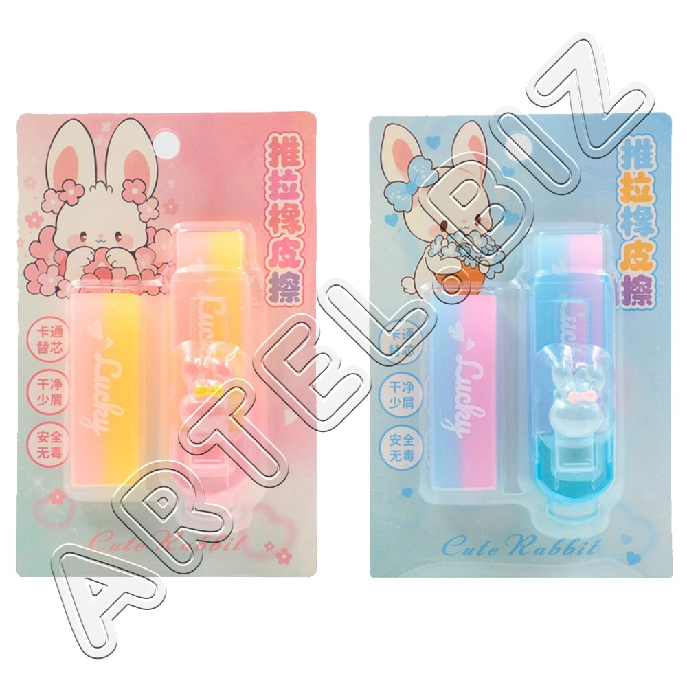 Ластик CUTE RABBIT пластик держ.+запаска, Сине-Розовый, арт.B-666