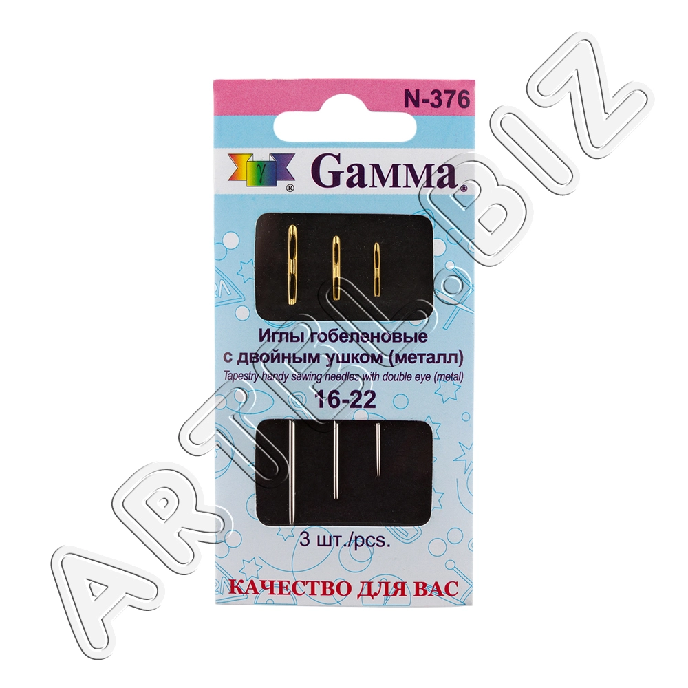 Иглы для шитья ручные "Gamma" N-376 гобеленовые №16-22 с двойным ушком 3 шт. в конверте с прозрачным дисплеем острие закругленное