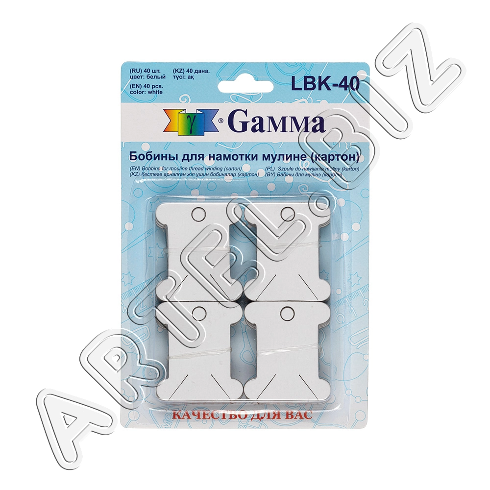 Gamma LBK-40 Бобины для мулине картон 4.1 см 40 шт в блистере белый