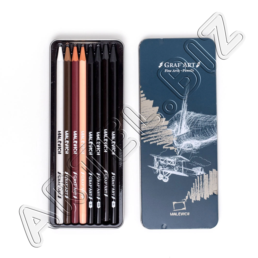 Набор графических материалов в металлической коробке, 8 шт., Малевичъ