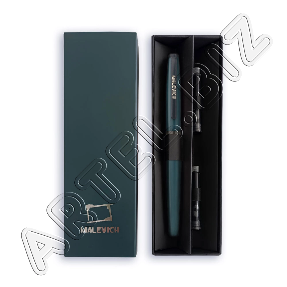 Ручка перьевая Малевичъ с конвертером, перо EF 0,4 mm, набор с двумя картриджами, мокрый асфальт