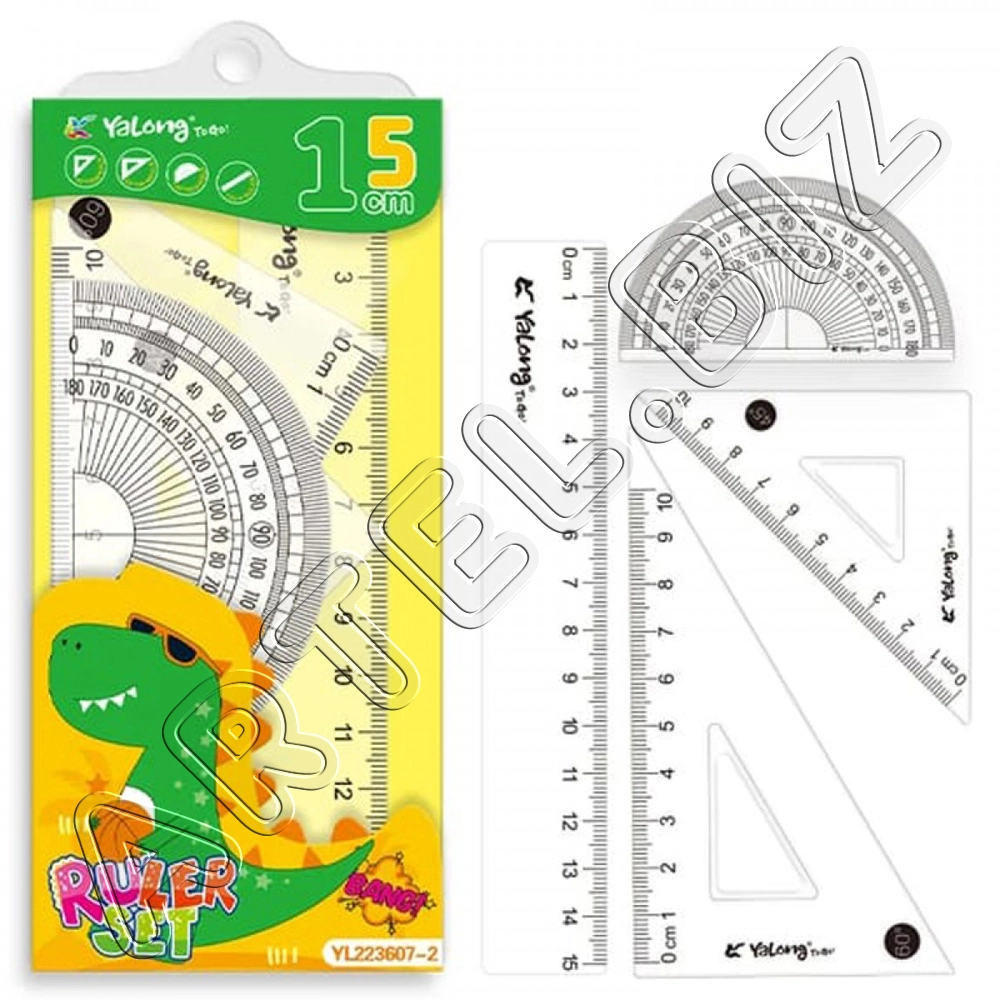 Набор линеек пластиковых, ДИНО, 20см, 4 предмета, Жёлтый, Yalong